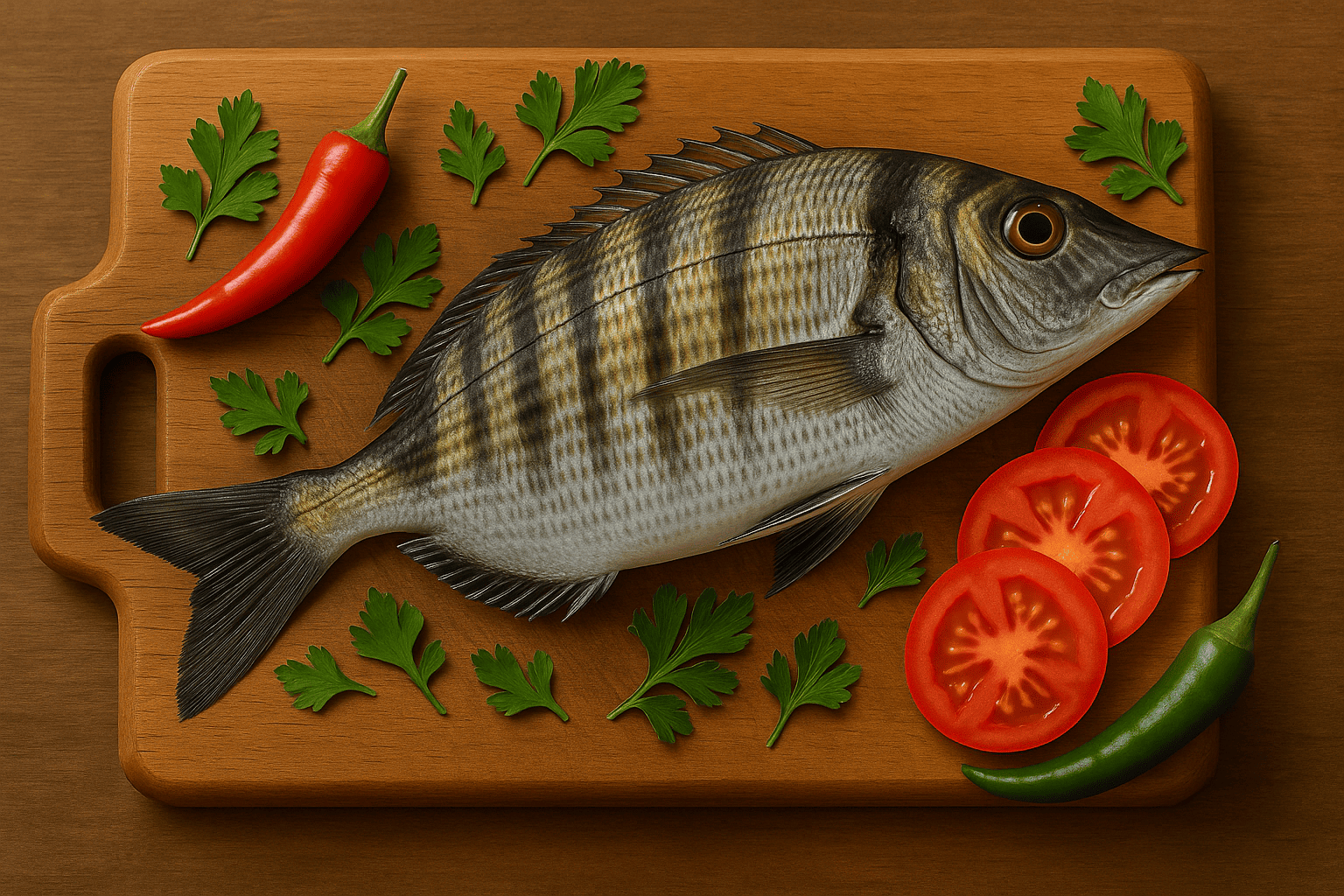 - الشوي (على الفحم أو في الفرن): هي الطريقة المثلى لتقديمه. يُنظف جيداً ويُتبل بخلطة الشرمولة المغربية (ثوم، كزبرة، كمون، زيت زيتون، وليمون) ويُشوى كاملاً، مما يبرز نكهة لحمه الطبيعية.